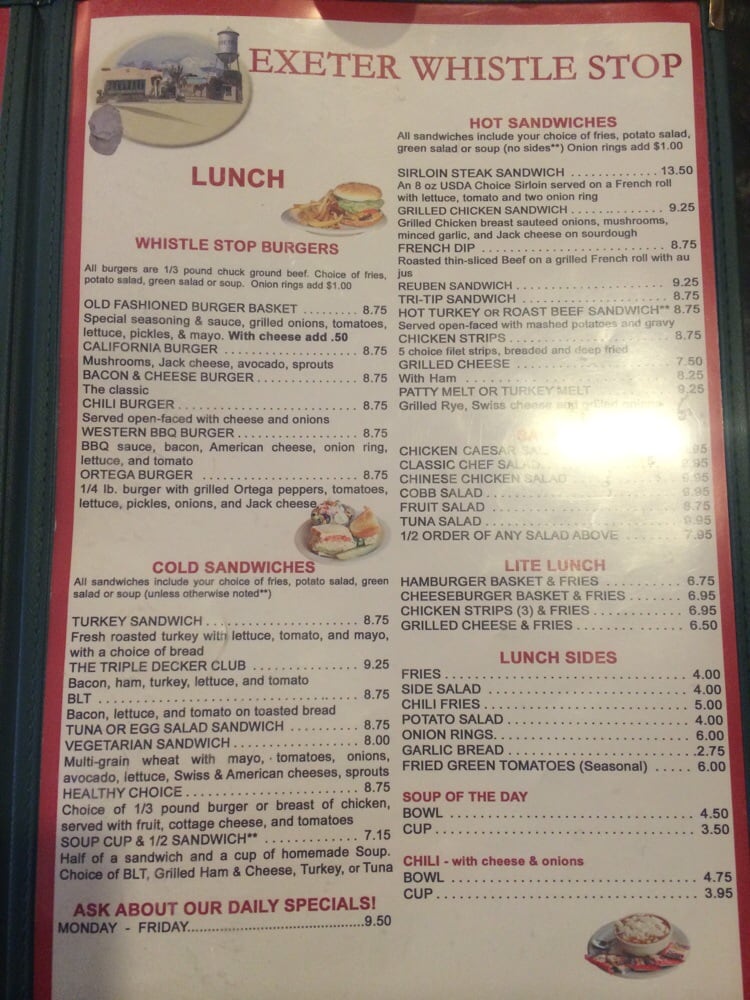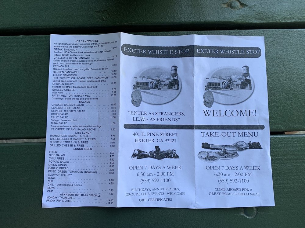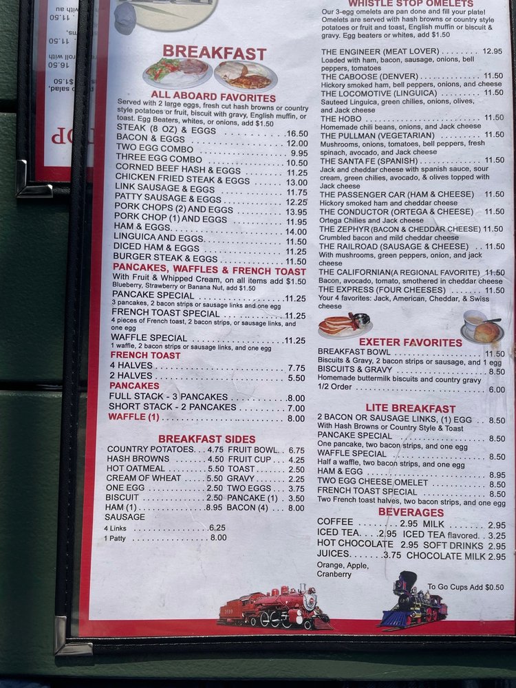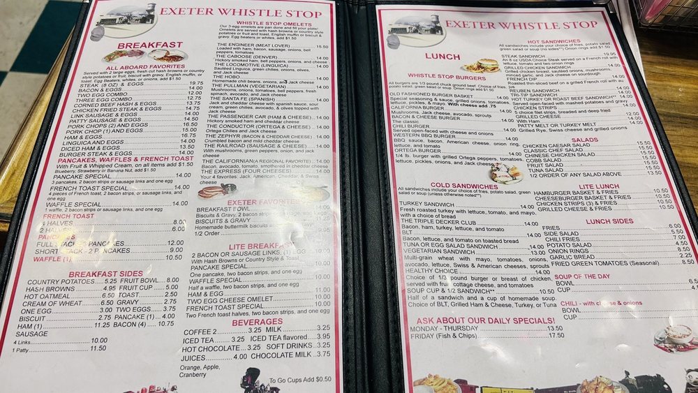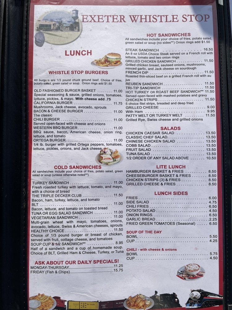 Exeter Whistle Stop, a beloved American restaurant located at 401 E Pine St in Exeter, CA, offers a charming ambiance with little trains on the ceiling. Customers rave about the fresh and delicious food, with standout dishes like the best pulled pork, breakfast bowl, and HUGE biscuits. The friendly and professional service provided by owner Sherrie and her dedicated team makes every visit a delightful experience. The menu includes options for breakfast, brunch, and lunch, with highlights such as the Conductor and French Toast. The restaurant is women-owned, wheelchair accessible, and offers a range of amenities including outdoor seating, drive-thru, and happy hour specials. Whether you're stopping by for a quick meal or catering for a group, Exeter Whistle Stop is a must-visit for exceptional food and hospitality.